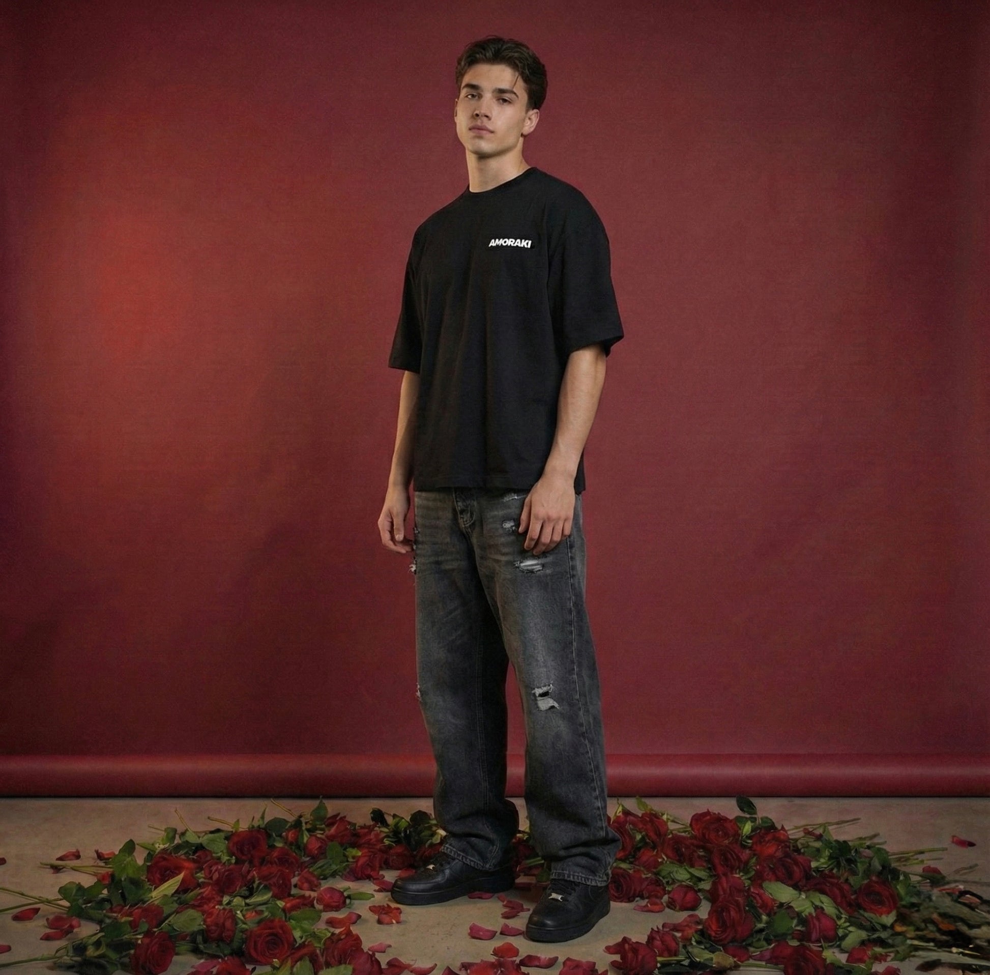 This boxy tee from the AMORAKI XOXO Collection balances everyday comfort with a clean, romantic streetwear aesthetic.