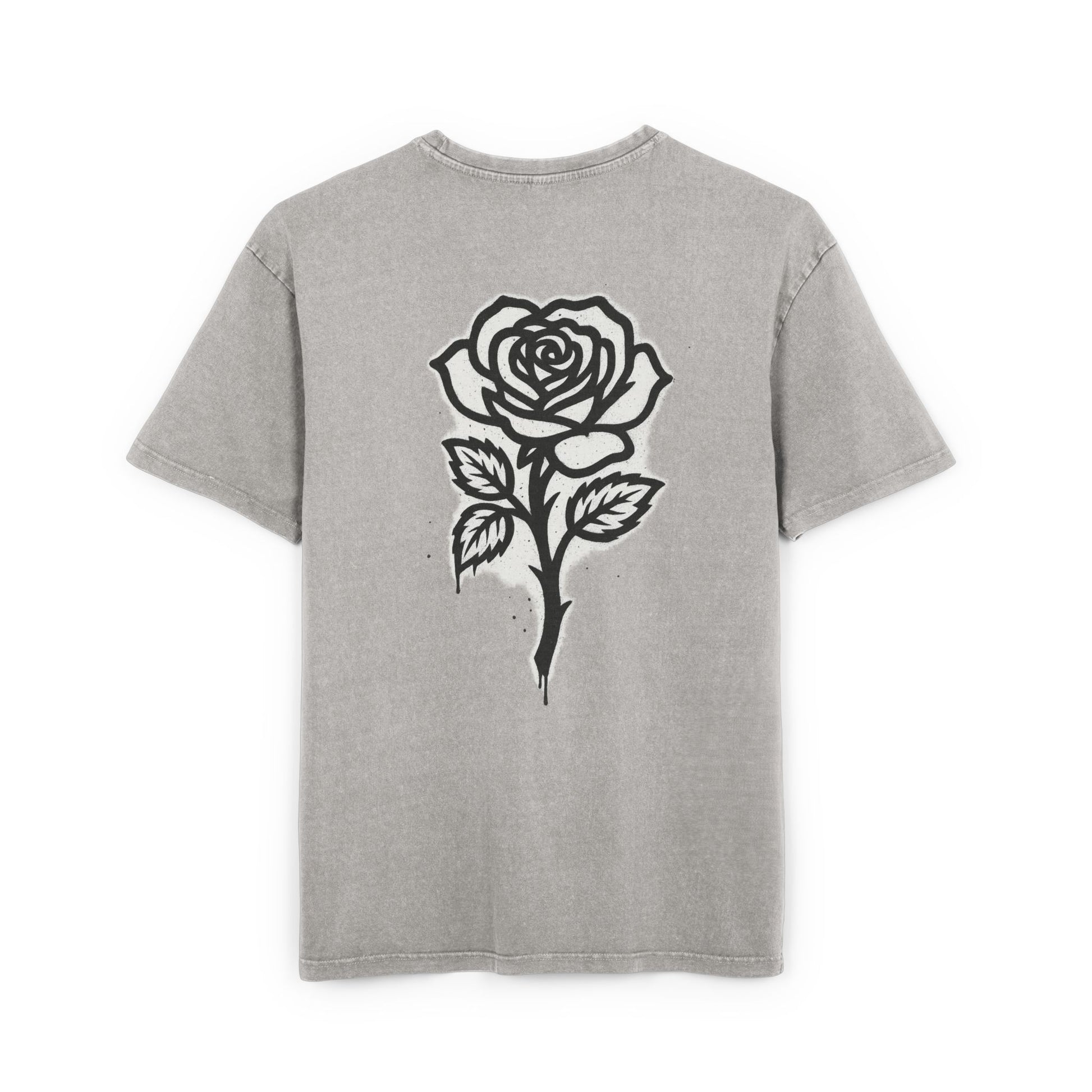 Men's Acid Washed Oversized Tee with Rose Design, Vintage Tee, Casual Wear, Street Style Fashion, Unisex Graphic Shirt